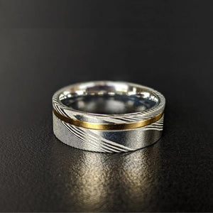 Helios 1- Men’s Damascus Steel & Gold Inlay Ring