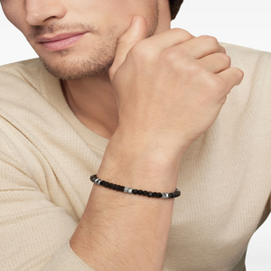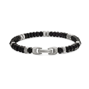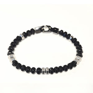 A sleek, structured bracelet crafted from 8mm hexagonal Black Agate beads, known for their grounding energy, paired with polished stainless steel accents for a bold, modern edge. Strung on a durable stainless steel cable and finished with a secure clasp, it delivers strength, balance, and everyday style.