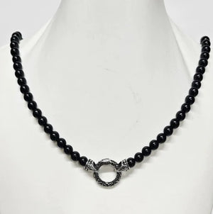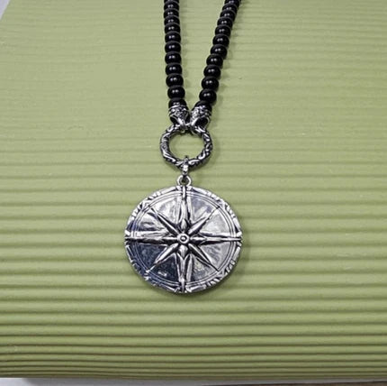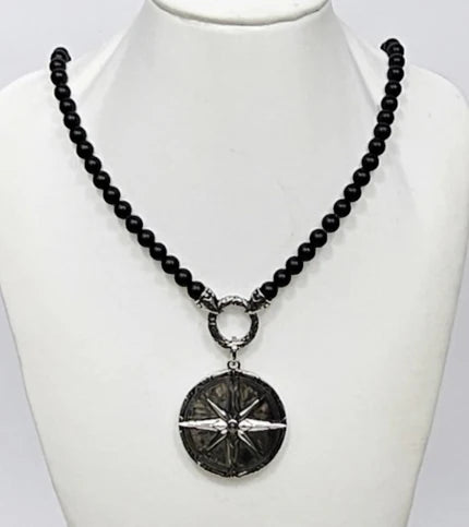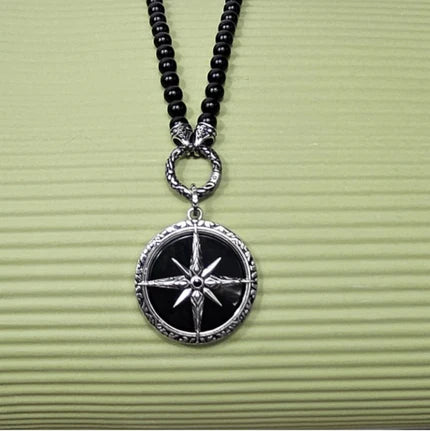 Black Onyx Beaded Necklace with Silver and Onyx North Star Pendant