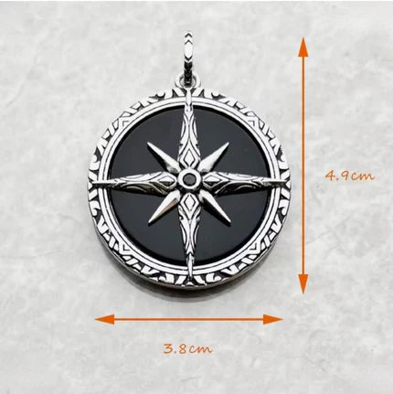 Pendant: 3.8 x 4.9cm Round North Star in Silver & Onyx