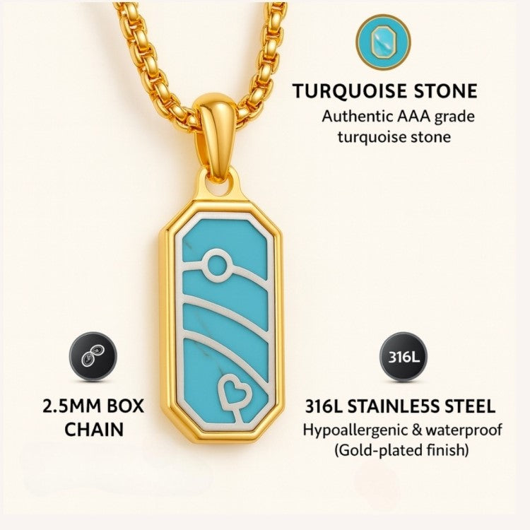 Turquoise has long been celebrated for enhancing communication, intuition, and inner harmony — making this pendant not only a stylish accessory but a personal talisman for confidence and clarity. Its vibrant blue-green tones and natural marbling ensure every piece is uniquely striking.