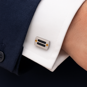 - Brushed Stainless Steel & Ion-Plated Black Cable & Screws Cufflinks