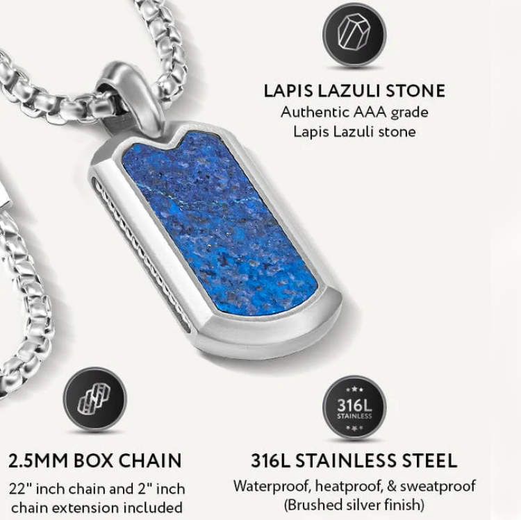 Crafted for men who value strength, meaning, and unmistakable style, the Lapis Valor Pendant combines natural stone with rugged modern design.