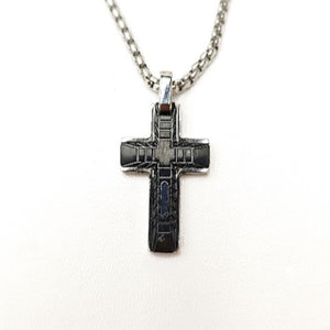 Celestis Stainless Steel Small Cross Pendant with Black Satin Inlay and chain