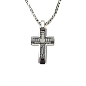 - Add a sleek and modern touch to your style with this Stainless Steel Cross Pendant, featuring a bold satin inlay for a striking contrast. Designed for versatility, this piece offers a refined yet contemporary look.