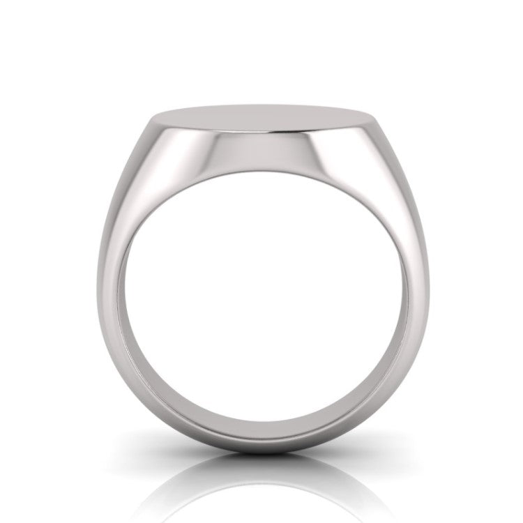 Handcrafted in 925 Sterling Silver, this distinguished piece features a 12x14mm oval face — a versatile canvas, perfect for engraving initials, a family crest, or a personal emblem. Its smooth contours and bold proportions make it a modern classic, while its weight and presence ensure it commands respect with ease.