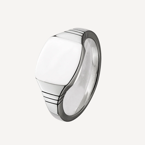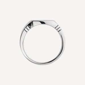 Handcrafted in 925 Sterling Silver, this bold piece features a 1mm square face — a clean canvas, perfect for engraving your personal emblem, monogram, or family crest. The sides are accented with subtle ridged detailing, darkened through an oxidisation process for depth and character.