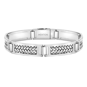 Hoxton London Men's 925 Sterling Silver Rhodium Plated Herringbone Rectangular Link Bracelet