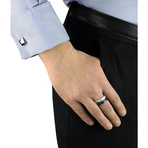 Hoxton London Men's Sterling Silver Twist Leather Inlay Ring