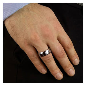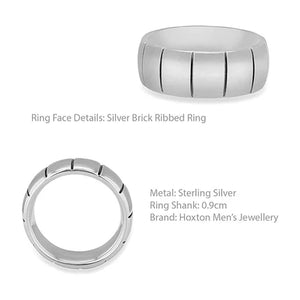 Hoxton London Men's Sterling Silver Brick Ribbed Ring
