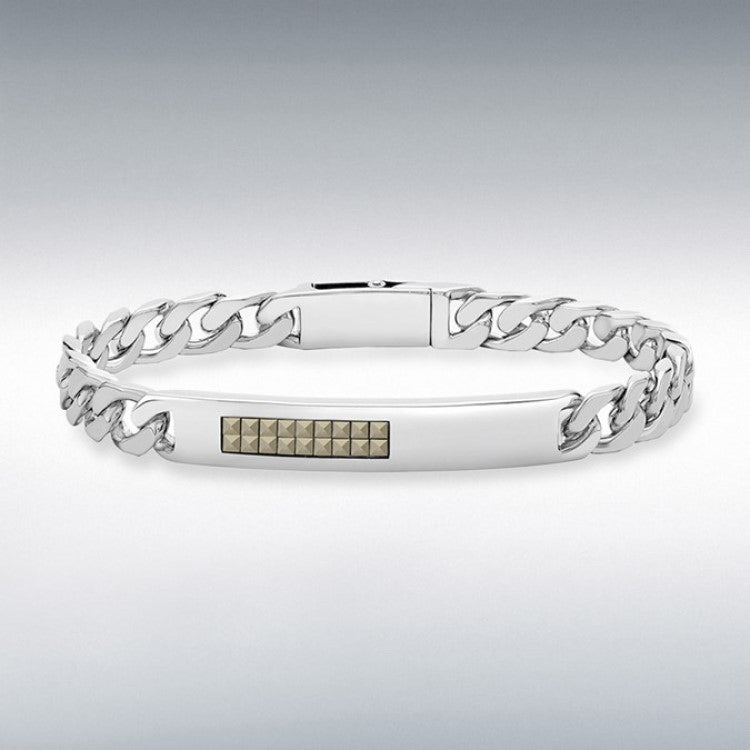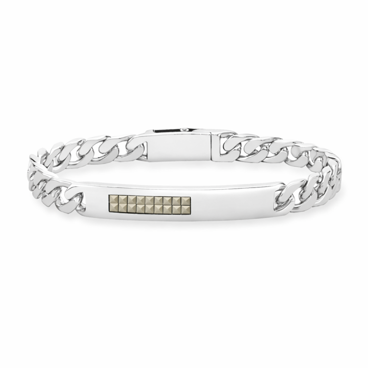Hoxton London Men's Sterling Silver Pyramid Marcasite Set ID Bracelet