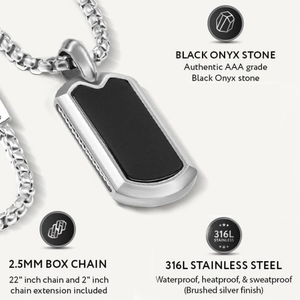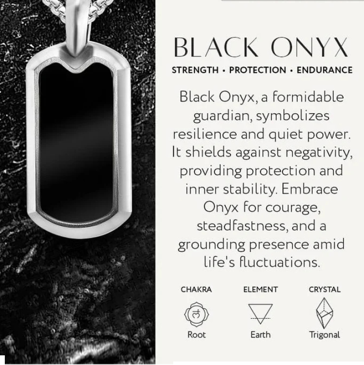 Elevate your style with the refined power of natural stone. Our Black Onyx Dog Tag Pendant blends modern masculinity with timeless elegance, making it the perfect piece for everyday wear or special occasions. Each stone is hand-selected for its deep, sleek finish — a symbol of strength, confidence, and resilience.