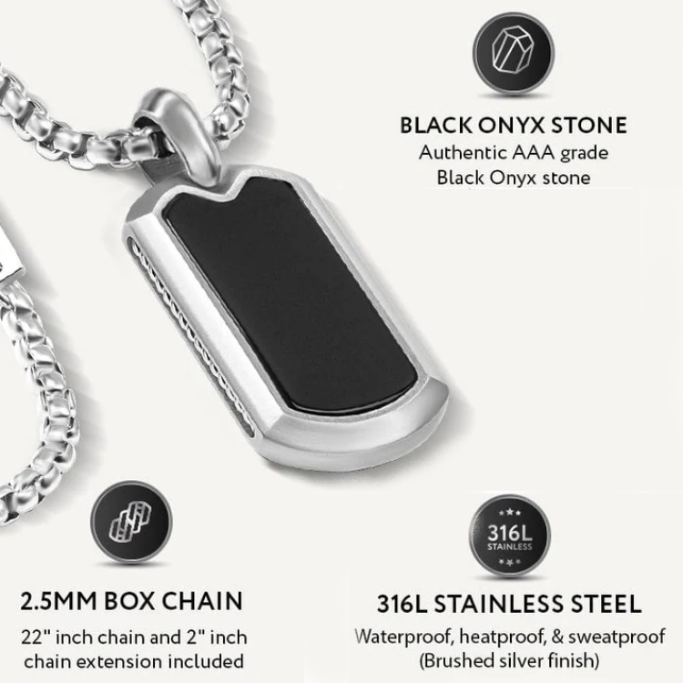 Black Onyx Dog Tag Pendant – Stainless Steel & Natural Onyx