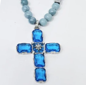 Design: A stunning silver cross, encrusted with sparkling Austrian crystals, beautifully complemented by the serene, oceanic hues of genuine aquamarine beads for a refined and elegant look.