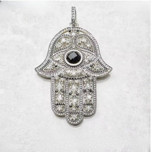Pendant: 70X50mm Silver Hamsa Hand with Austrian Crystals