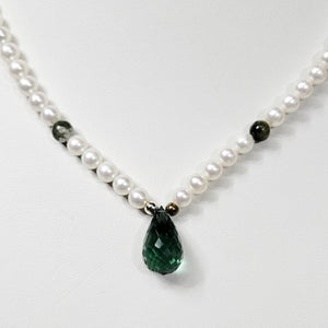 Cultured Pearl Necklace with 14k Gold Spacers and Green Briolette Tourmaline Necklace