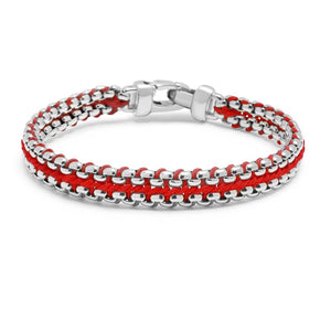 Introducing our Red Woven Box Chain Bracelet, a bold fusion of modern edge and timeless design. Made with premium 316L stainless steel, this bracelet is built to last while adding a touch of luxury to your everyday style.