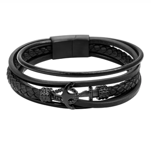 Make a bold statement with this multi-layer braided leather bracelet, featuring a striking metal anchor centerpiece—a timeless symbol of strength, stability, and adventure. Designed with durability and effortless wear in mind, it's secured with a high-quality magnetic stainless steel clasp.