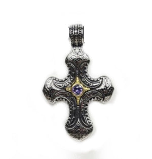 Pendant: 58X38mm Stainless Steel Cross with Amethyst Crystal