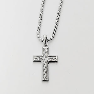 Stainless Steel Cross Pendant with Twisted Cable Inlay and chain.