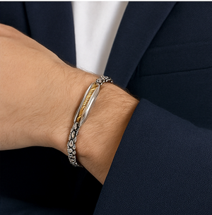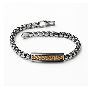 - Material: - Stainless Steel ID Bracelet with Gold Twisted Wire Insert Bracelet