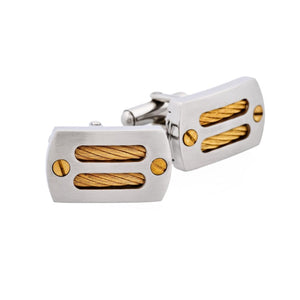 Brushed Stainless Steel & Ion-Plated Gold Cable & Screws Cufflinks