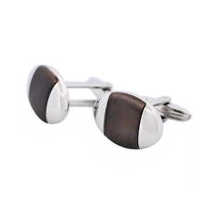 Product Details: - Stainless Steel Ion-Plated Matte Gunmetal Oval Cufflinks with Polished Sides