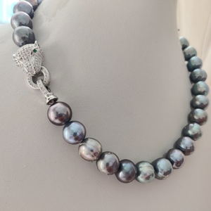- Material:- Baroque AAAA+ 11-12mm Natural Haiti Black Blue Pearl Necklace with Panther Clasp