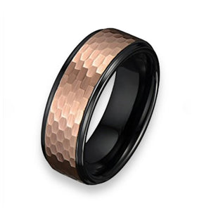 Black & Rose Gold Honeycomb Finish Tungsten Carbide Ring (8mm)