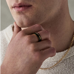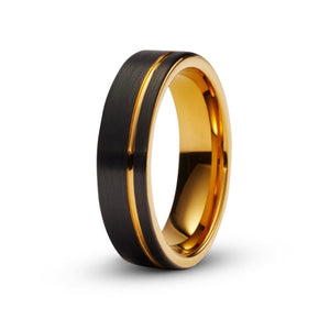 A sleek and stylish fusion of black and rose gold, this 6mm tungsten carbide ring is a refined statement piece. With a satin matte black finish and a contemporary rose gold groove, this ring is designed for the modern man who values strength with elegance. The gold-plated inner adds a subtle touch of luxury to the comfort-fit design.