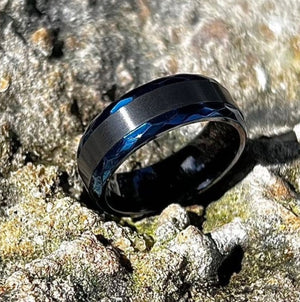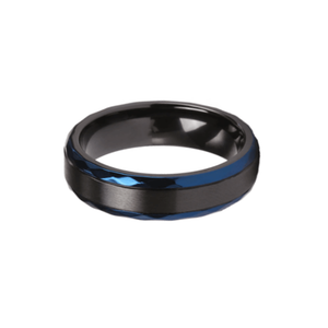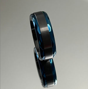 Black Zirconium and Blue Beveled Edge 8mm Ring