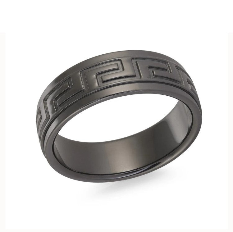 Black Zirconium Greek Key Design Men's Ring – 8mm