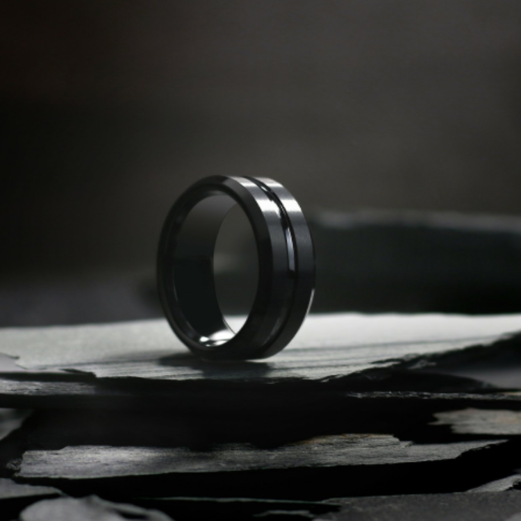Zirconium is a rare, ultra-durable metal used in aerospace and military industries. Through an intense heating process, it forms a permanent black oxide coating, making it incredibly tough, lightweight, and uniquely dark. This makes black zirconium one of the best materials for men’s rings — powerful, striking, and built to last.