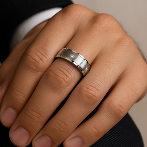 Material: Made from silver-toned tungsten carbide — prized for its extreme hardness, scratch resistance, and long-lasting finish