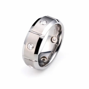 Silver Tungsten Carbide Beveled Edge Ring with Stone Set (8mm)