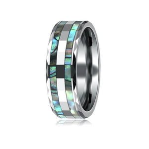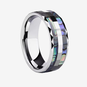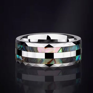 Silver Tungsten Carbide Ring with Abalone Shell Inlay (8mm)