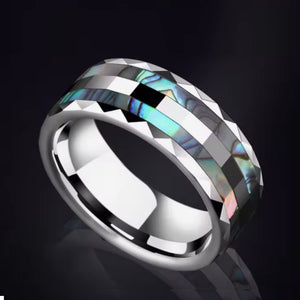 This ring combines the natural allure of abalone with the toughness of tungsten, making it a standout piece for daily wear or special occasions.
