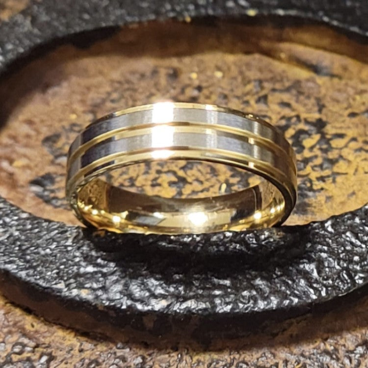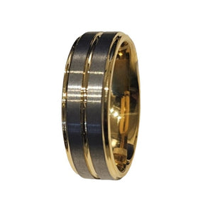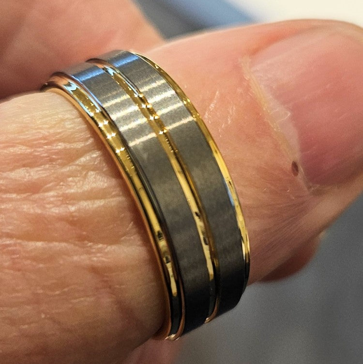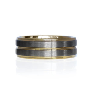 Tungsten Carbide & Yellow Gold Satin Finish Top with polish gold edges ring