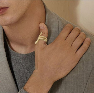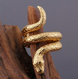 This 5mm gold-plated snake ring is a bold yet refined accessory. Crafted from durable 316L stainless steel, it features a matte gold finish and a detailed snake motif, offering a perfect balance of edge and elegance.
