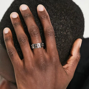 Make a refined statement with this striking stainless steel ring, featuring a bold cut-out Greek Key design. A symbol of eternity and unity, the Greek key pattern adds timeless elegance to this modern band—perfect for both daily wear and special occasions.