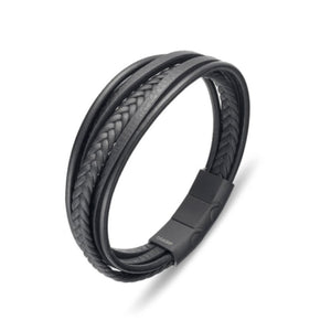Stainless steel men's Multi Strand all Black leather Bracelet