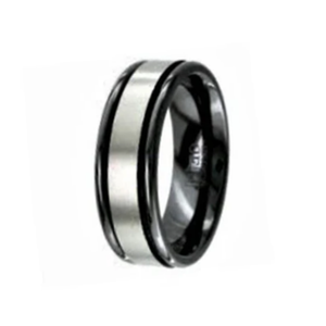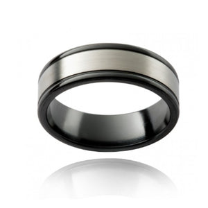 Two Tone Black Zirconium Design Band Men's Ring